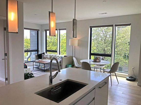 Live in Luxury in Southie PORT45 - Concierge building with gym, garage parking, function room on the roof - Newly constructed FURNISHED luxury condo for rent near the Broadway T (redline). Features 2+ bed, +den, 2 bath one of which is a master bath, private balcony off the living room, dining area, in-unit laundry, floor-to-ceiling windows, central heat/AC, 1 car garage parking, concierge, onsite gym, common function room, grill, outdoor terrace, electric car charger, pet spa, dog run, bike storage. The modern kitchen features an open countertop Caesarstone island, stainless steel appliances, hexagonal glass and marble backsplash. The master suite features a walk-in closet and luxury master bathroom. Ask for the 3D and YouTube links. Available AUG 1, 2020. 12+months leases only. Could also be unfurnished (same price).