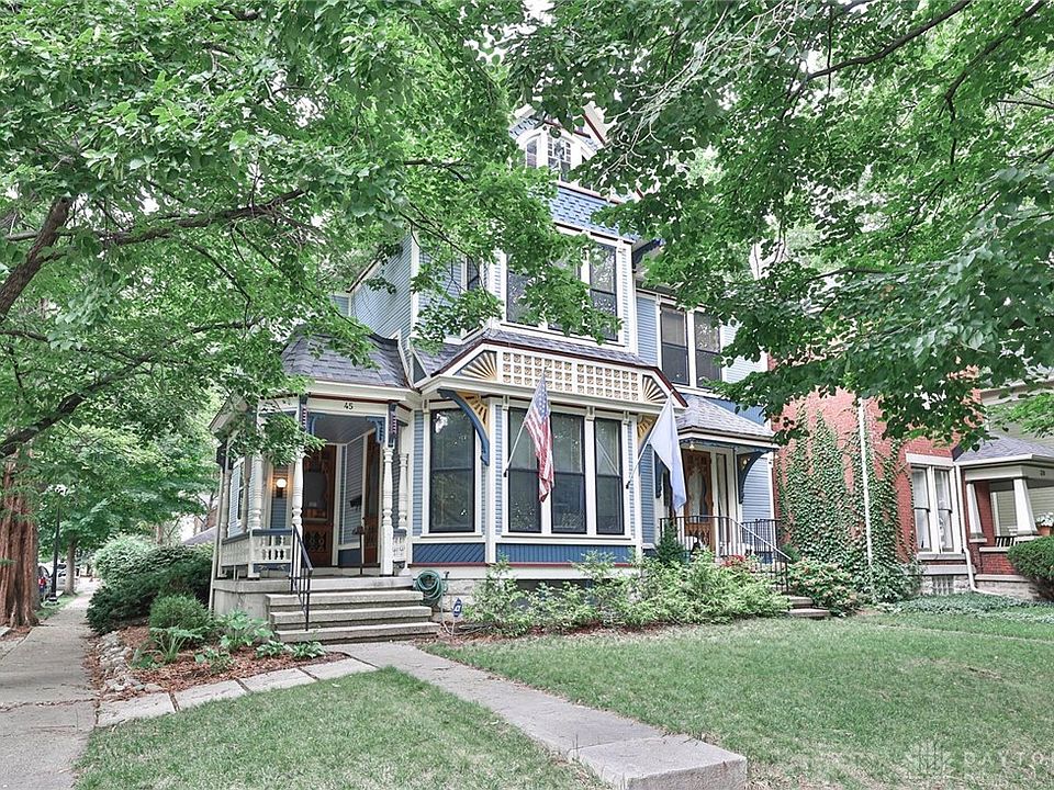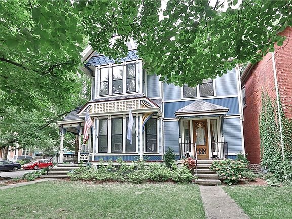 Step into timeless elegance with this 1886 Queen Anne masterpiece, perfectly situated in the heart of Dayton’s historic McPherson Town District — one of the city’s most walkable and vibrant neighborhoods. Just a short stroll from the Schuster Center, Riverscape, the Dayton Art Institute, and River’s Edge Montessori School, this location blends historic charm with modern convenience. Encompassing 3,445 square feet of architectural splendor, this 3-bedroom, 3-bath home marries late 19th-century craftsmanship with contemporary livability. From intricate woodwork and soaring ceilings to extensive wall-to-wall bookcases, every detail tells a story. The exterior, painted in five complementary hues, highlights the home’s ornamental details and rivals the finest Painted Ladies found anywhere. Inside, the first-floor library features a full wall of floor-to-ceiling bookcases, with walls sponge-painted in five rich shades of burgundy. Original sliding doors allow the space to be closed off for quiet reading or study. Upstairs, a second-floor front room with large bay windows and another wall of built-in bookcases provides an ideal home office or study bathed in natural light. Inviting first- and second-floor porches are perfect for morning coffee or evening relaxation, while a rare three-car detached garage offers exceptional convenience in a historic district. Sun-filled rooms, preserved period features, and grand entertaining spaces echo the grace and beauty of the era. Whether you're a history enthusiast, book lover, or simply someone seeking character and charm, this home delivers in every way. Don’t miss your chance to own a piece of Dayton’s rich history — a true Queen Anne Painted Lady gem awaits your arrival.