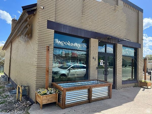 Commercial property frontOutside patio areaWelcoming entrance areaNew carpetSeparate office spaceStore front windowsVaulted ceiling