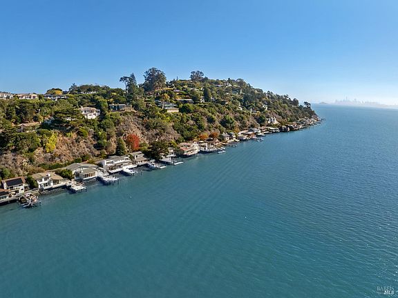 Situated along one of Belvedere's most exclusive waterfront streets, this inviting waterfront residence captures views of San Francisco, the Golden Gate Bridge, Sausalito, and Mount Tamalpais. Exuding a beach-inspired mid-century vibe, the home is designed for effortless indoor-outdoor living, with open, light-filled interiors that flow naturally to expansive decks, a gated yard with a turf lawn, outdoor dining areas, and a private dock, creating the ideal setting for relaxed waterfront living. New white oak hardwood floors on both levels. The light-filled living room features soaring vaulted ceilings, floor-to-ceiling windows that frame breathtaking views, a fireplace, and access to the expansive waterfront deck. Positioned to capture stunning water views, the dining room features large windows and sliding glass doors that open to the outdoors. The updated kitchen features quartz countertops, a peninsula with counter seating, and stainless steel appliances. Rare main-level primary suite with a private deck, a walk-in closet, and captivating views. A comfortable guest bedroom, a full bath, a laundry room, and a powder room complete the main level. The upper level features three bedrooms and a full bath. Attached two-car garage.