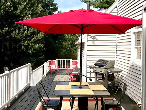 MUST SEE Beautiful cape style home nestled on 2.5 private wooded acres, walking distance to town & rail trail. This home is ideal for entertaining large gatherings. Inviting front porch leads to a spacious family room with cathedral ceiling, big windows, wood stove, & slider to multiple decks. This room flows into an updated kitchen featuring custom ceiling high maple cabinets trimmed in crown molding, built in wine rack, center island with lots of storage. Open floor plan to the large dinning room featuring wood beam ceiling, big picture window, & wide pine wood floors, that continue to an oversized front to back living room. French glass door connects to a desirable 3 season screened in porch continues to spacious decks, stone patio, & big beautiful back yard. Detached, Oversized 2+ car garage with walk up room above, fenced in dog kennel, circular drive way, & blueberry bushes. Finished walk out basement, ideal for home office, playroom, home gym. 9 miles to Wachusett mountain.