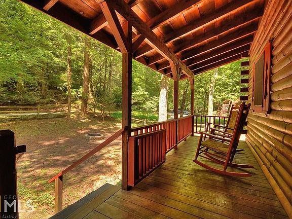 Kick back & relax with this true log cabin on the CARTECAY RIVER! WOW factor is the huge deck on the rivers edge w/steps to the river...Fish, Kayak, Tube or simply chill listening to the river music. Fantastic location less than 10 minutes from Downtown Ellijay, all paved roads, no HOA fees. Cozy & full of character, this log cabin features 3 sleeping areas; including bedroom on main floor & super size LOFT. 2 full baths, cathedral ceilings, all wood interior, stone hearth with wood burning stove, open concept, fully equipped kitchen has center island & dining area. Great outdoor living with: rocking chair front porch, full length screened porch, outdoor firepit and huge deck! As level a lot as you will find on the river.