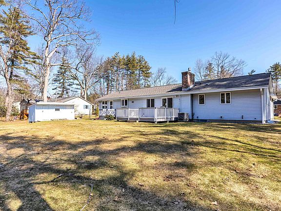 Pride of ownership throughout the ENTIRE property, both inside and out! This 3 bedroom ranch offers everything you might look for in one level living. Almost 1600 SQ FT on the main level and over 400 SQ FT of finished heated space in the lower level perfect for a rec room. On the main floor you will find an en-suite primary bedroom with an updated 3/4 bath, 2 other good sized bedrooms & an updated full bath too! You will enjoy the updated kitchen with granite counters and a breakfast nook or gather around the dining room table in the formal dining room. Main floor is topped off with a sizable living room and a den with a brick hearth and gas stove. Baseboard heat to keep you warm and Central Air to keep you cool! Other updates include LED lighting and Anderson replacement windows. Outside you will find a manicured lawn, a 16 X 14 deck and a shed with power! Newer roof, siding and gutters all around with leaf guards to help with maintenance concerns. Phenomenal location under a mile from Route 101 but in an established neighborhood right around the corner from the Elementary School and this property is on public water and abuts the 240 PLUS acre Tucker Brook conservation area replete with walking trails for when you just need to take a hike! This home will be sure to please and offers many years of low maintenance living! Home comes with all appliances including the generator! 60+ day closing preferred. Showings begin Tuesday April 11th.