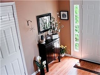 Picture perfect end unit 3 story townhouse with new carpet, wood floors, painting. Private premium lot backs to wooded area. Three bedrooms, 2 1/2 baths, garage, family room with walk-out finished lower level. 9' ceilings add depth and contrast. Excellent condition.