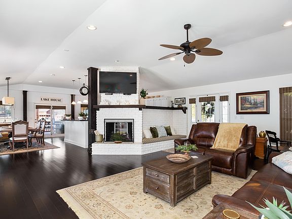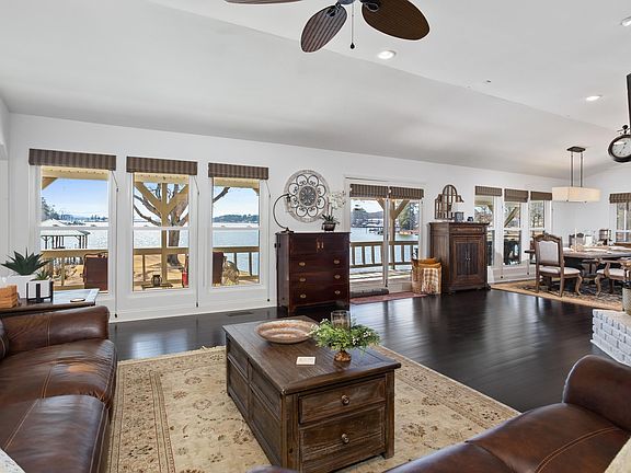 TWO HOMES!! A main house with 2BR/2.5 BA AND a guest house with 1BA/2BA! Do you want an AirBnb or a place for friends and family? Need inlaw suite? Or just want a place for the kids to hang out? This home has a beautiful open main house w/hardwood laminate floors throughout, office, half bath & great kitchen space with views of the lake ACROSS THE WHOLE HOUSE! Covered decks for hanging out/grilling, screened deck for enjoying wine or coffee especially in the winter, sunning deck off master and a deck off the guest house also. Covered area below for parking lawnmowers, jet skis, car, etc. Workshop space below house. Crawl space is encapsulated for extra security, dock has lifeguard system for electrical protection in the water, house has spider be gone system to keep pesky spiders away, new windows in both homes and more! Boat house has two slips-one for pontoon, one for bass boat & also comes w/ a double jet ski port. So many amazing features. Come check this home out before it's gone!