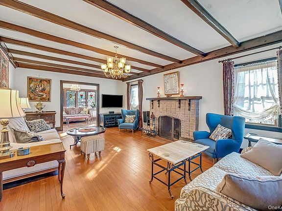 Must see to appreciate the timeless elegance that abounds in this expanded Tudor set on a private 1/3 of an acre in Bonnie Crest- one of New Rochelle's most coveted areas. Featuring original architectural grandeur paired with thoughtful updates and an exceptional layout, this incredible home sets the stage for a perfect haven with endless potential for a comfortable lifestyle. The spacious home unfolds with exceptional flow. A welcoming entrance hall leads to a generous formal living room with a sun-filled solarium and a large formal dining room adorned with original, exquisite leaded glass windows that are truly artistic masterpieces. The tastefully updated kitchen blends old-world elegance with modern capability, offering custom cabinetry, Viking appliances, a sun-filled breakfast area, mud room and ample room for gathering. The first floor also boasts a home office and powder room. With five spacious bedrooms and 3.5 baths, the layout supports both grand entertaining and comfortable everyday living. The primary bedroom has a deep walk-in closet and large updated bathroom with steam shower and a soaking tub. The lower level provides over 1,000 square feet of versatile possibilities with a separate entrance providing valuable additional living space - perfect for a home office, studio, guest suite, or recreation area - expanding the home's functionality and potential. Throughout the home, each space highlights the Tudor's hallmark proportions: rich millwork, graceful room transitions, abundant natural light, and a sense of balance that makes each space both impressive and welcoming. The lush, manicured grounds provide exceptional privacy and ample space for future enhancements. A sophisticated circular driveway, framed by the original stone wall, complements the property, while a two-car garage and extended driveway accommodating up to 15 vehicles offer unmatched convenience and flexibility. Perfectly positioned in a sought-after area with immediate access to major highways and transportation for an easy NYC commute, this home offers a rare opportunity boasting abundant space, timeless elegance, and the structural integrity to become an extraordinary estate tailored to your vision. Convenient to all local shopping, restaurants, schools, worship, and transportation, and a quick train ride to NYC, this home is the perfect blend of sophisticated and convenient everyday living.