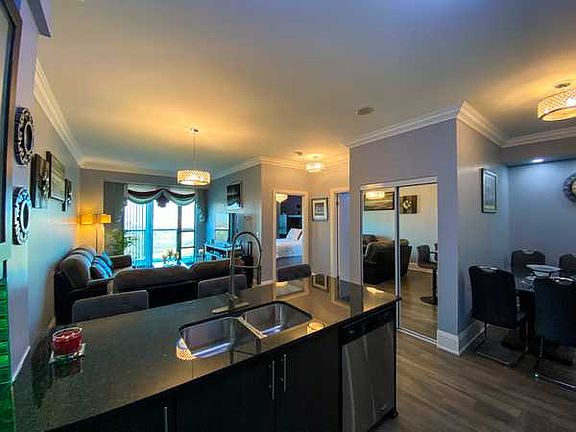 Showstopper! The best of the best! Beautiful One bedroom plus den with huge balcony overlooking the 848 acre conservation area. Suite is fully upgraded with no expense spared. Crown mouldings, high baseboards and laminate flooring throughout. Upgraded light fixtures with LED lights and dimmers. Kitchen with glass doors, undercabinet lighting, backsplash and granite countertops. Stainless Steel appliances and upgraded faucet. Washroom with glass shower doors, medicine cabinet and new toilet and vanity with quartz countertops. Master Bedroom is a good size with double mirror closet doors. Custom window coverings makes the place feel so inviting just like a model home.