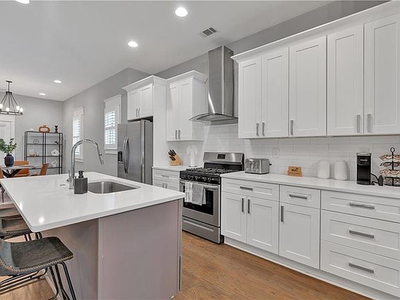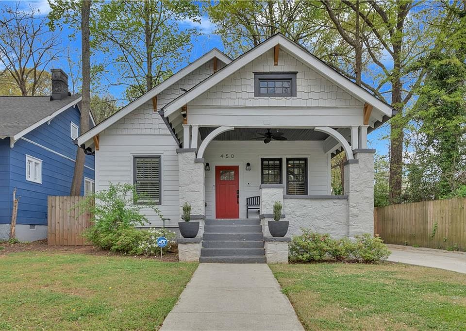 An incredibly charming, renovated bungalow in Historic West End. With 10 ft ceilings, gleaming hardwood floors throughout, an open concept floorplan, front and back porches, and a true primary suite, this home has it all. The living room with original fireplace and a shiplap feature wall opens to the kitchen with stone countertops, custom cabinets, and stainless-steel appliances, including a gas range. The adjacent dining area opens directly to the back porch, creating a perfect indoor-outdoor connection, opening to the large patio and flat fenced backyard, a perfect area for playing and pets to roam. The primary suite includes roomy closet, an additional door to the back patio, and private bath with double vanity and large walk-in shower. Two additional bedrooms share a renovated hall bath, offering comfort and flexibility for guests, family, or home office needs. There are window treatments throughout, a laundry closet with full-size front loader washer and dryer, and attic storage. There is no homestead exemption on this home. Additional photos coming soon.