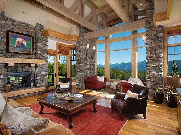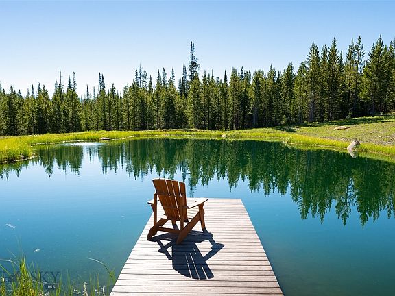 Your own little Yellowstone in Big Sky on 20 acres. Trout pond w/very nice trout. Fantastic views of Spanish Peaks/ Porcupine/Lone Peak. Minutes to the Gallatin River and approximately 45 min to Yellowstone Park. Absolute best sledding driveway in Big Sky! Meticulous grounds. 5 br/5.5 ba, timber frame ceiling in open living/kitchen area w/wood burning fireplace. Hand sewn wood floors thru out. Office and library on main floor. 2 Bedrooms on main floor so can live small or open up downstairs when guests come. Downstairs holds an exercise room(w/Murphy Bed), 8 bed bunkroom along with large family room w/ propane fireplace and 2 addl BR. Decks off of every room. Large 3 Car garage for all your toys. Sauna and hot tub on covered porch with Spanish Peak views. Super private and tranquil property. Less than 10 miles to Town Center and then 6 miles on to Big Sky Mountain Village. Enjoy all that Big Sky has to offer then escape to your own private paradise! Beaver Creek West is a gated community with some of the best views in Big Sky and your views are very well protected on this property. Wildlife is off the charts! The videos that could be shown of the wildlife taken from this house and neighborhood is one after another. Near by National Forest makes this place your own little National Park. Wake up every morning wondering what you will see that day! Buyers to verify any and all information. Sold unfurnished but depending on offer remaining furnishings are open for discussion. Priced to where you are getting the trout pond for free.