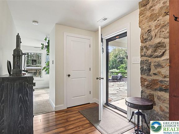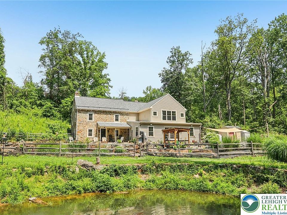 Welcome to Bog Turtle Farm, a historic Pennsylvania estate set on 24+ acres of pristine woodlands in Williams Township, where classic elegance is seamlessly integrated with contemporary amenities. This serene property features streams, koi pond, saltwater pool and spacious event barn. At its heart is a meticulously maintained stone farmhouse with original exposed beams and wide-plank floors. The updated kitchen includes stainless steel appliances, a center island and a farmhouse sink with Mercer tile, opening to a dining room with a wood-burning fireplace and built-ins. Additional main-level highlights include a stone-walled den with a wood stove and slate flooring, a large living room with French doors opening to the private outdoor area, a home office, a half bath and a mudroom. Upstairs, the primary bedroom offers a walk-in closet and ensuite with dual sinks, a jetted tub and walk-in shower. A 2nd bedroom, hall bath with clawfoot tub and laundry room complete this level, with a charming 3rd bedroom on the top floor accessed by a wooden staircase. Outdoor features include an in-ground saltwater pool and loggia. The historic barn houses a two-bay garage and workshop, plus a large upper level for events or creative use. Modern upgrades include a brand-new geothermal HVAC system and a backup generator ensuring efficient year-round comfort and peace of mind. Bog Turtle Farm offers peaceful surroundings with both eco-friendly living and convenient access to NYC and Philadelphia.