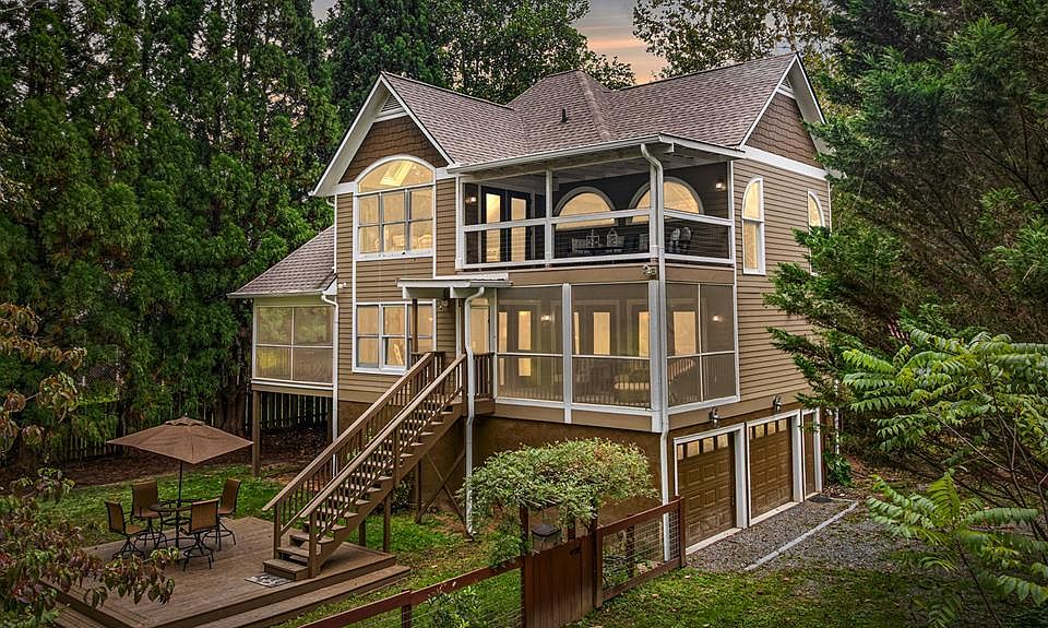 RIVERFRONT & FULLY FURNISHED! Step into this beautiful Craftsman-style home perfectly situated along the scenic Cartecay River, offering the ideal blend of mountain charm and modern comfort. The 2-story great room features a cozy fireplace with gas logs and flows seamlessly into the granite-accented kitchen and dining area with a VIEW! The generous primary suite offers vaulted ceilings, a large walk-in closet, a spa-like bath with jetted tub and separate shower, plus a private porch overlooking the yard and river...so nice! Two guest bedrooms on the main include one with a screened porch overlooking the water. Enjoy evenings by the fire pit, stroll the gentle yard to the riverbank, or take in the sounds and views of the river from the home's multiple outdoor living spaces. (Fenced in yard is perfect for your furbabies!) The basement includes a full finished bath, plentiful storage and a drive-under two-car garage. Nestled in a small, walkable neighborhood ideal for daily strolls, this home offers privacy, paved access, and a prime location in the heart of apple and wine country—just 12 minutes from town. Recent upgrades include ALL NEW: interior paint, high-end kitchen appliances, LG washer/dryer, gas logs, garbage disposal, carpet in all bedrooms, ceiling fans, zoned HVAC board, security system, gutters with guards, fencing, French drains, and more! No short-term rentals allowed; full-time residents age 65+ are exempt from school tax. Enjoy immediate occupancy, move-in ready!