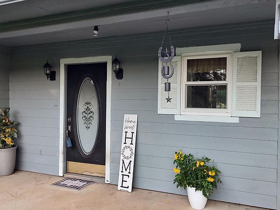 HALLSVILLE ISD...20.441 Beautiful acres with 2 gates to property. Both take you to the house, but the long gravel driveway will also take you to the back of the property passed the barn/workshop, RV-Carport, storage buildings, a 450ft water well, and the 2 ponds, one spring fed, both stocked with Bass, Bluegill and Catfish. The acreage is completely fenced and cross fenced with 4-Improved pastures. Enjoy the awesome sunset from the front porch swing, or relax on the large covered patio and enjoy the many colors of the roses that line the fenced backyard, while the kids and pets enjoy the shade and safety of the 45ft x 72ft x 6ft high chain link fenced enclosure. Be self sufficient with the 450 foot water well (installed by seller in Sept 2022). Access to W Harrison Water at the front of property is also available. There's 2 large fenced areas perfect for your vegetable, and/or flower gardens. The property comes with a 900sf metal building with roll-up door, electric, water, and has newly rewired electrical, plus updated lighting. The versatile metal building serves as a workshop, hay barn, livestock barn, and equipment storage. Next to this are enclosed large chicken coops, open and closed barn areas for livestock, or stalls for your horses. One stand alone storage building, small shed for feed storage, as well as a metal RV-carport. Solar and electric security lighting newly set up for house and outbuildings. The house has a large open den and kitchen area. The den has vinyl plank flooring, high ceiling, ceiling fan w/light kit, and a WBFP. The eat-in-kitchen has a double sink, ceramic title flooring, lots of windows for natural light. The dining area has a ceiling fan w/light kit, breakfast bar, large food pantry, ample working counter space and cabinet storage. All 3 bedrooms have ceiling fans w/light kits and also more natural light coming through the new energy efficient windows. (installed in Dec 22) The primary bedroom has an extra large walk-in closet, primary bathroom has ceramic title flooring, shower and linen wall cabinet. Guest bath has ceramic title flooring, and tub/shower. Laundry room has ceramic title floor, storage cabinets, farmhouse sink and a 40gal Rheem hot water heater. *February of 2020 all kitchen appliances were updated to high end stainless steel including a "Smart" refrigerator and convection microwave.* The A/C was updated in 2018 along with Vinyl Plank Flooring throughout the home except bathrooms, kitchen, laundry room and foyer all which have ceramic tile flooring. NEW ROOF was put on 12/23 *Refrigerator, washer and dryer can be conveyed to new owners depending on accepted offer. "Come make this BEAUTIFULL PROPERTY YOUR FOREVER HOME!