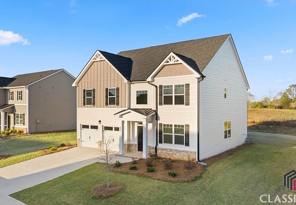 As low as 5.99% Fixed Builder special rate FHA, VA & USDA 100% financing eligible!! $10k in seller paid closing cost with builder preferred lender!! BARROW COUNTY'S NEWEST PREMIERE COMMUNITY. FEATURING A POOL, TENNIS COURTS, PICKLE BALL, WALKING TRAILS, and a CLUBHOUSE WITH SERVING KITCHEN AND GATHERING AREA WITH FIREPLACE!!! Preserve at Dove Creek is a USDA qualified neighborhood. Located just 10 minutes from FORT YARGO STATE PARK and 20 minutes from ATHENS GA. We are located 2.5 miles from 316, and close to Athens. The PACKARD floor plan IS A 4 BEDROOM 2.5 BATHROOM HOME, which has much to offer, with formal living & dining room, spacious family room with a cozy fireplace. There is a lovely rear covered porch to enjoy your morning coffee or a nice sunset dinner. On the 2nd level we have 4 large and spacious bedrooms, The owner's suite is oversized and complimented with a spacious bathroom suite showing off dual vanities, oversized shower and large walk-in closet. 3 generous secondary bedrooms with nice closets and a laundry room is also upstairs. ALL Homes are equipped with a Smart Home System. Lawns have designed 3 Zoned Sprinklers Systems.