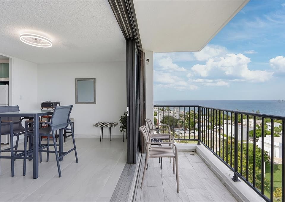 Step into this apartment and let the breathtaking views do the talking. Located on the 14th floor of the Torre de la Reina condominium, this 1,007 square foot residence features two bedrooms and one bathroom. The living room and kitchen have been updated with modern flooring, while the original parquet floors in the bedrooms have been preserved, adding warmth and timeless character. The remodeled kitchen and updated finishes complement the unit's sleek feel, while sweeping panoramic views of Escambron Beach take center stage. Brand-new hurricane-resistant sliding doors seamlessly connect indoor and outdoor living, and a new mini-split system enhances comfort in the living area. The apartment includes one designated covered parking space and the reliability of a full power generator. This gated community offers 24/7 security, a resort-style pool and gazebo, a designated car wash area, and an on-site coworking space known as District View ideal for remote work or focused productivity. Enjoy exceptional proximity to the park and bike path, connecting directly to Old San Juan in one direction and Condado and Miramar in the other.