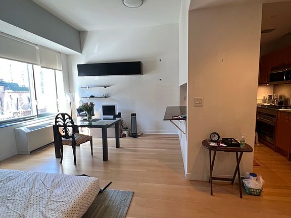 A rare and valuable feature, this unit also includes its own in-unit washer and dryeran uncommon luxury in studio apartments across NYC. The California Closet system in the sleeping area provides smart, built-in storage solutions.