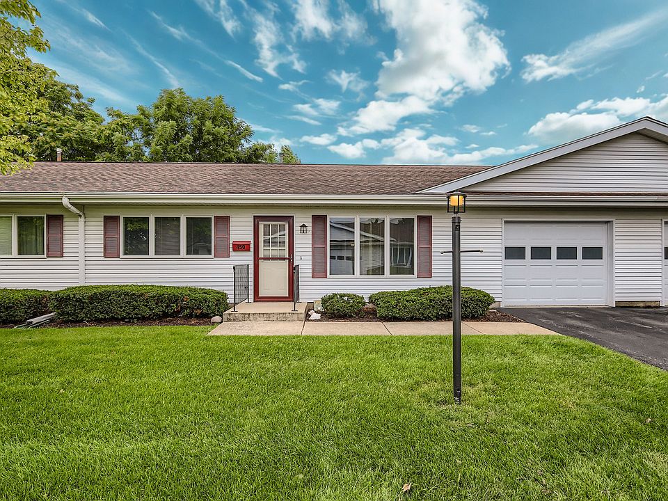 Discover easy, one-level living in Sycamore's desirable Old School Condominium community. This spacious two bedroom, 1.5 bathroom ranch townhome is designed for comfort and convenience. The flowing layout includes a large living room and dedicated dining area adjacent to the sliding glass door leading out to the patio and backyard. The full bathroom and hallway laundry are conveniently located between the two bedrooms. The half bathroom is accessible through the functional mudroom / garage entrance area. A standout feature is the attached one car garage with pull-down attic stairs for ample storage. Enjoy ultimate convenience with a walkable location just steps from downtown Sycamore, near the Sycamore Community Center, and the Sycamore Golf Club.