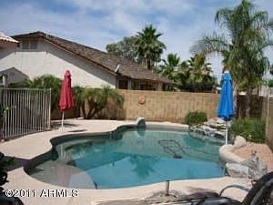 Recently updated with beautiful 20'' tile in hallways, kitchen, laundry & bathrooms. Huge master suite with wood flooring and porcelain tiled shower surround and custom closet! Plantation shutters throughout hardwired for surround sound in all rooms. French doors in great room open to extended covered patio and Pebble tec salt water pool with a waterfall. RV Gate and RV parking, storage shed (14'x8') and 2.5 car garage with 220 power outlet and stairs to the attic. Huge laundry with lots of cabinets. Highly rated school district in a desirable neighborhood with lots of trees, close to a park - welcome home!