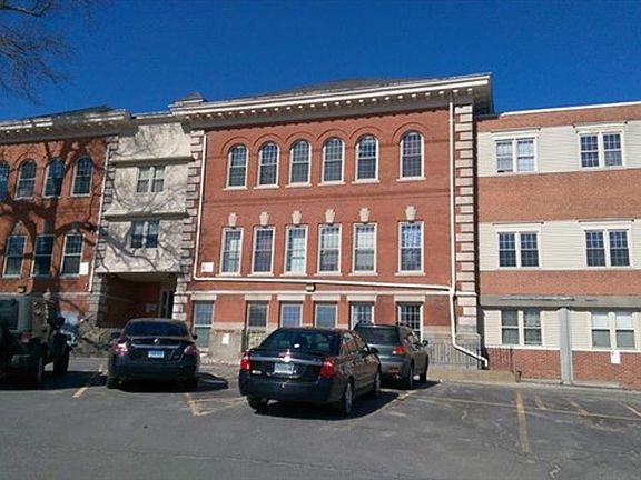 The exterior is red brick with neo-classical design elements that make it stand out in the neighborhood. It has three floors serviced by one central elevator with access to the roof. Having been a school, the building is generally ADA compliant. Units are large, with lots of closet space. All of the units have high ceilings but some are spectacular almost 20 feet. They include large French windows allowing light to flood the rooms. Third floor and hallway skylights also add to the brightness of the interior. The units have separate heat, water, and electrical utilities as well as metering.