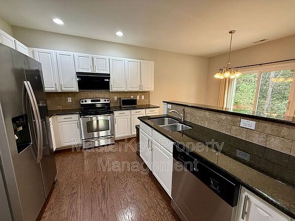 Kitchen includes Stainless Steel Microwave, Oven, Dishwasher, and Refrigerator.