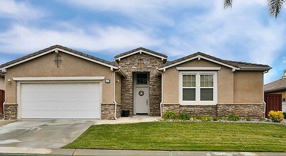 ***WATCH THE VIDEOS in VIRTUAL TOUR FOR COMPLETE TOUR OF THIS HOME*** Luxury Comes Easily in the Championship Collection Plan 3 at Four Seasons Hemet. Upon entering this home you are greeted with beautiful tall ceilings open floor plan and Ceramic tile flooring through out living space with carpeted bedrooms, custom window coverings. This home features Spacious open kitchen featuring quartz counters and island, upgraded cabinets and built-in appliances, plus butler's pantry. The large family room, Formal living room, and Formal Dining Room make this home great for entertaining. There are 3 total bedrooms plus an office/den/4th bedroom and 3 full bathrooms. The large Master suite features dual closets, Master bath with dual sinks, a vanity area, tub and shower. Indoor laundry room, Two car garage, storage cabinets & work bench. Beautiful professionally designed landscaping. Backyard features a large California patio, lush landscape with roses, fruit trees and a beautiful fountain to enjoy on those summer nights. Newer high efficiency A/C unit. K.Hovanian's Four Seasons at hemet is designed around active adult lifestyle. This Gated community offers you a beautiful mountain setting with 18-hole golf course. Resort Style Lodge, amenities such as tennis courts, pool, spa, bocce and horseshoe courts, shuffle board, garden and gazebo. Within the Lodge you have, fitness center, billiard room, computer lab, MOVIE THEATER, BISTRO, and lots of calendared social activities.