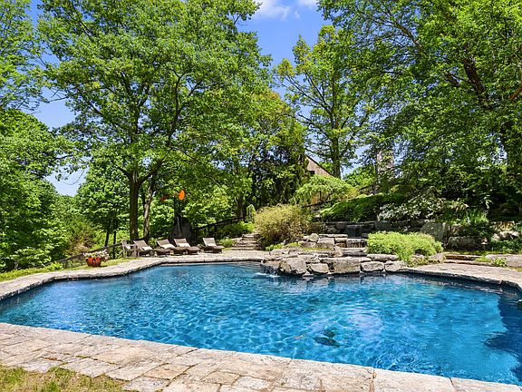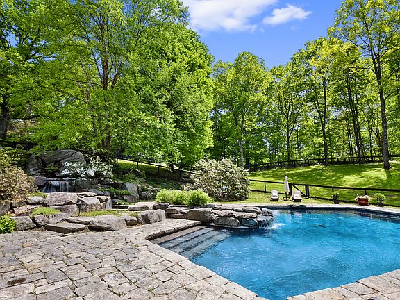 Rare opportunity to enjoy this spectacularly developed property while building your ideal dream home. Over seven quiet landscaped acres of beautiful property with complete privacy which includes a gorgeous 2 bedroom ultra chic apartment (Wolf gas range, stainless appliances, fireplace), age old trees, specimen plantings, dramatic gunite pool with waterfalls and spa. Fabulous four stall heated barn/wash stall/hayloft, new riding arena, all new 5' fencing surrounding entire property, paddocks and trails and 3 car heated garages (convertible to 4/6 car) with AC and Pirelli rubber flooring. Existing foundation/basement for a 5 bedroom house all ready to be built upon. All infrastructure in place (septic, well, paved driveway) and ready to go!