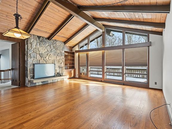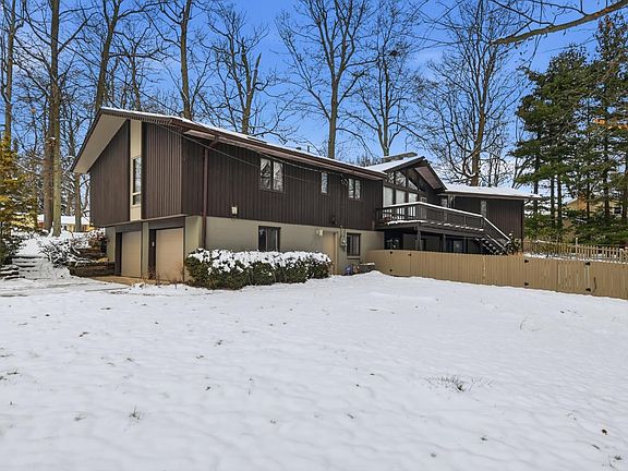 Discover This Truly Unique Home Filled With Thoughtful Extras And Inviting Spaces. Enjoy Two Fireplaces, Including A Striking Stone Accent Wall With Fireplace In The Living Room And Floor-to-ceiling Windows That Flood The Space With Natural Light. A Spiral Staircase Leads From The Primary Bedroom To A Private Office In The Basement, Complemented By Built-in Bookshelves Throughout. The Primary Bedroom And Bath Are Situated In Their Own Separate Area For Added Privacy. Outdoor Living Shines With An Upper Balcony And A Lower Wrap-around Deck, All Overlooking A Beautiful Partially Fenced Lot Spanning Two Parcels Totaling Just Over An Acre. Additional Peace Of Mind Comes With A Roof Replaced In 2021 And Two Furnaces And Two Water Heaters, With One Of Each Recently Updated. A Truly Special Property Offering Comfort, Character, And Space.