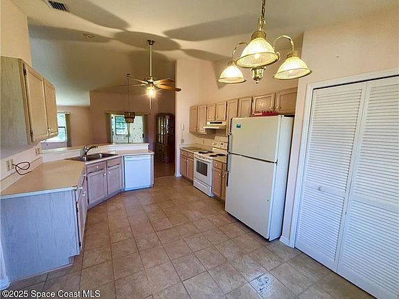 Backup Offers Welcome! Per a SouthState Bank lender, this home qualifies for 100% Financing with NO PMI & NO INCOME LIMITS for the borrower. A unique brick veneer home, located in Sebastian, Fl. Home has an oversized, extended garage measures roughly 22ft x 27ft deep & an open kitchen featuring a bay window, pantry & breakfast bar. The living room, with its vaulted ceiling flows seamlessly into the kitchen & dining area. A sliding glass door opens to a Florida Rm & out to a private, shaded backyard with space for a garden. The laundry rm is equipped with a mop sink & access to the garage. The owner's suite features a large shower, double sink vanity. Accordion shutters on the windows make for easy quick closure. There is so much to love! Merely minutes to waterfront dining, entertainment, beaches, Sebastian Inlet, golf, fishing & kayaking. The Local high school offers the International Baccalaureate Program.
