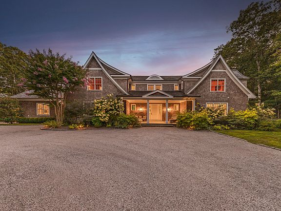 From its gracious covered front porch to its light-filled interiors and resort-style amenities, every detail of this classic shingled Hamptons home has been thoughtfully designed and meticulously crafted. Offering six bedrooms, six full-baths and two half-baths, and spacious common rooms, the residence spans 9500+/- sq ft across three levels. The front entryway leads to a dramatic double-height living room that sets the tone for grand yet comfortable living. The expansive great room includes a chef's gourmet kitchen with top-tier appliances and large island, a family room with wood-burning fireplace, and a dining area bathed in natural light. The generously sized, first-floor primary suite offers a sitting area, two custom-designed walk-closets, and a luxurious spa-inspired bathroom with a soaking tub, dual vanities, and large shower. Additional highlights on the main level include a den/media room with a half bath, an elegant powder room for guests, a laundry room with double washer/dryers, and an attached two-car garage. Upstairs are two ensuite bedrooms, two additional bedrooms sharing a full bath, an office, and a deck off one of the bedrooms with sweeping views of the rear yard. The finished lower level provides a gym, recreation room, artist space, an office, bedroom, and full bath. Outdoors, mature landscaping, expansive decking, and bluestone patios create a tranquil setting that is ideal for unwinding or entertaining. Enjoy the 40'x20' heated gunite pool, the relaxing hot tub, and the private tennis court. Located near the communities of Bridgehampton, Sag Harbor and Southampton Village, this home provides the perfect blend of privacy and prime Hamptons accessibility to shops, restaurants, and gorgeous ocean and bay beaches.
