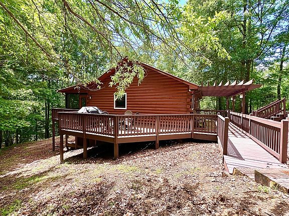 Discover rustic charm with modern comfort in this beautifully remodeled 4-bedroom, 2-bathroom log home and another office/5 bedroom. Offering 2,100 sq ft of spacious living, this home sits on 4.97 unrestricted acres—an ideal blend of wooded seclusion and open land. Whether you're seeking a private retreat or room to roam, this property provides the best of both worlds. The main level features 2 spacious bedrooms and a beautifully updated full bathroom. Downstairs, you'll find an additional bedroom and a fully updated bathroom, plus a versatile office/den, and a generous storage room—ideal for remote work, guests, or extra living space. No detail was overlooked in the recent renovation, which includes a brand-new kitchen, updated bathrooms, HVAC system, hot water heater, roof, screened porch, and even sections of the road were paved for easier access. Additional highlights: Fully Furnished, Detached carport for covered parking, large storage shed for tools, toys, or gear, a VERY PRIVATE setting – your own peaceful retreat. Just minutes to downtown Blue Ridge & McCaysville, scenic lakes, the Toccoa River (perfect for trout fishing), hiking trails, and outdoor adventure. Whether you're seeking a full-time residence, vacation getaway, or income-producing short-term rental, this property is a rare find in the heart of North Georgia's mountain paradise. Experience luxury mountain living at its finest – your dream log home awaits! Video link youtu.be/81THxf1DrC0?si=1clqyWDrIE3ESLVl