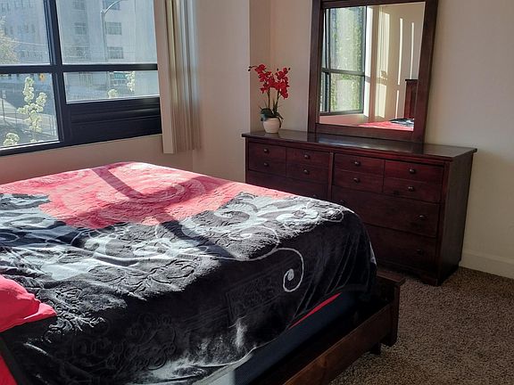 Truly delightful, bright and sunny, tastefully furnished condo with gorgeous mountain views in downtown Reno! Quietly located at the end of hall, this sparkly clean unit features granite countertops in kitchen and bath, stainless appliances and lovely furnishings...California King bed with coordinating furniture and desk in living area. Located in downtown Reno, it's walking distance to the river, restaurants, entertainment, everything! Underground assigned parking, 24 hour security, very nice clubhouse with pool tables, work and conversation areas, very nicely appointed gym. All utilities except internet included.