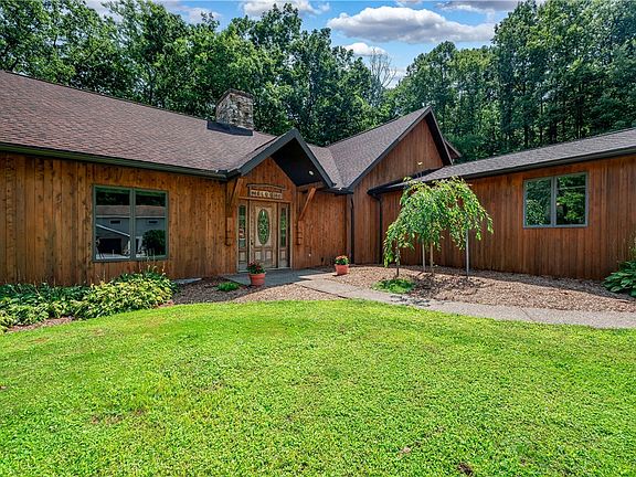 Nestled on a sprawling 12-acre expanse with FREE gas, this custom cedar-built 4 Bed, 3 Full Bath, 2 Half Bath home redefines luxury living. Prepare to be captivated by the charm and elegance that this residence exudes, boasting a host of meticulous updates that make it a must-see masterpiece. Main Floor Master ensuite & Laundry Room. The kitchen features hickory cabinets & granite counter tops and seamlessly flows into the great room, where a mesmerizing panorama of the pond and lush front yard unveils itself through large windows. Upstairs, three generously sized bedrooms, each boasting ample closet space. An additional room can craft your dream home office or an imaginative play area. Finished Basement w/wet bar to host all family gatherings. Elevate your leisure time with a dip in the in-ground saltwater pool or gather around the fire pit as twilight casts its enchanting glow. Wander over to the heated/ air-conditioned pole barn, designed to house your toys and treasures in style.