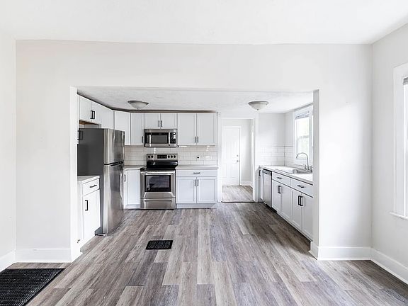 Welcome to 452 N Kealing Ave, a beautifully updated 2-bedroom, 2-bathroom duplex located in the heart of Indianapolis' Near Eastside. This spacious unit offers approximately 1,118 square feet of living space with modern vinyl flooring, a bright and open floor plan, and in-unit laundry hookups for added convenience. The kitchen comes equipped with essential appliances and plenty of cabinet space, making meal prep easy and efficient. Both bedrooms are generously sized, and each full bathroom is thoughtfully designed with contemporary fixtures. Situated on a quiet street with quick access to downtown, local parks, and public transportation, this home offers both comfort and convenience. Don't miss out on this move-in ready opportunity in a growing neighborhood.