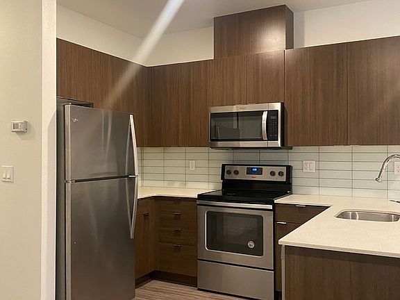 This bottom floor two bedroom apartment was newly built three years ago and has stainless steel appliances and A/C. It is located right off of I5 and near a Max station, which could be an ideal location for commuters! Near New Seasons, Fred Meyer and great restaurants.