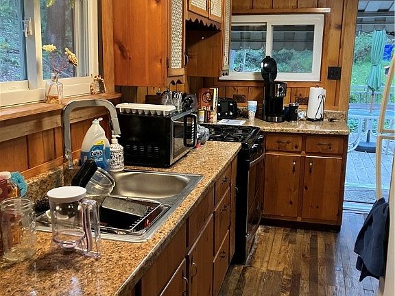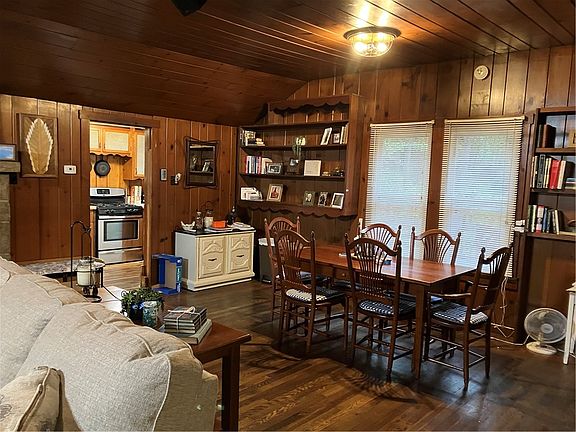 This is an Adorable, Ranch Style Cottage Nestled in the Woods for Privacy and Natural Enjoyment, Yet Close to Everything. Three Bedrooms - 1 Full Bath with Laundry. Gorgeous Original Hardwood Floors, Walls and Ceilings in the Living Room and Dining Room, Wood Burner in the Cozy Living Room with Stone Fireplace, Original Character Intact Throughout, Galley Kitchen and Spacious Dining Area for Entertaining. Office Area and Pantry Room for Storage, Outside You Will Find a Deck off Kitchen for Relaxing and Listening to the Small Babbling Brook, Two Car Detached Garage with Loft for storage (access behind building for loft), Lots of Parking Available, Plus an Old Boy Scout Cabin on Property, Chicken Coop with Fenced In area and Small Car Port. There is a small fenced in area on the side of the home also. All of This is Surrounded by Woods and Nature - OGM'S Included! Come See This Perfect Oasis!