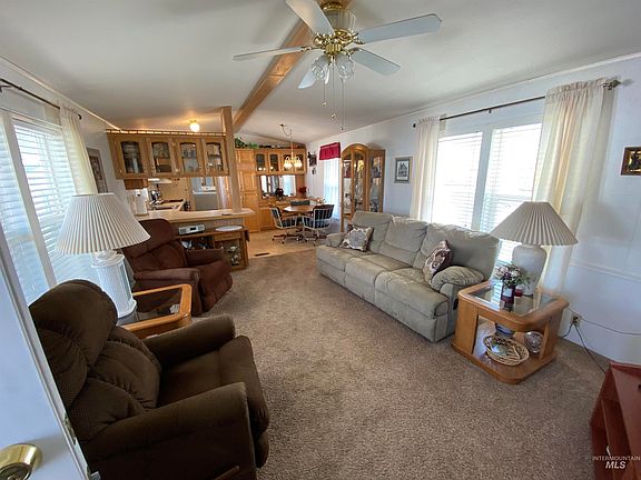 LAZY J RANCH: Terrific 2 bdrm, 2 bath Nashua Manufactured Home located in an over 55 park. Home has been well maintained & is in excellent condition. Cool central A/C for summer, warm natural gas FA heat for winter. Spacious covered porch that extends into a carport. Well designed Kitchen, with excellent cabinets and built-in. All appliances plus water softener included. Vaulted ceilings, roomy Master Suite with double vanities and shower.