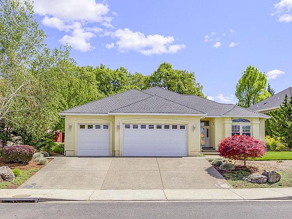 Impeccably maintained single story contemporary style home in the Eagle Point Golf Community. The gorgeous 3bd/2.5 bath home welcomes you with amazing amenities. 10 ceilings, tons of window with lots of natural light, beautiful Hard-Wood, Travertine tile and slate floors. The huge kitchen features custom maple cabinets, granite counter tops, stainless appliances, over size range with convection oven, island w/breakfast bar, on demand hot water and pantry. The living/great room has a gas fireplace, built in entertainment center, custom lights and C-fan. The open split floor plan is great for overnight guests, with a very private master suite. The master suite is very spacious with a warm fireplace, built in book shelves, and additional sitting area and access to the rear yard. The master bath includes a custom tiled shower, jetted tub, double sink vanity and walk-in closet. Enjoy the very private rear yard with covered and open deck areas, soothing water feature and mature trees.