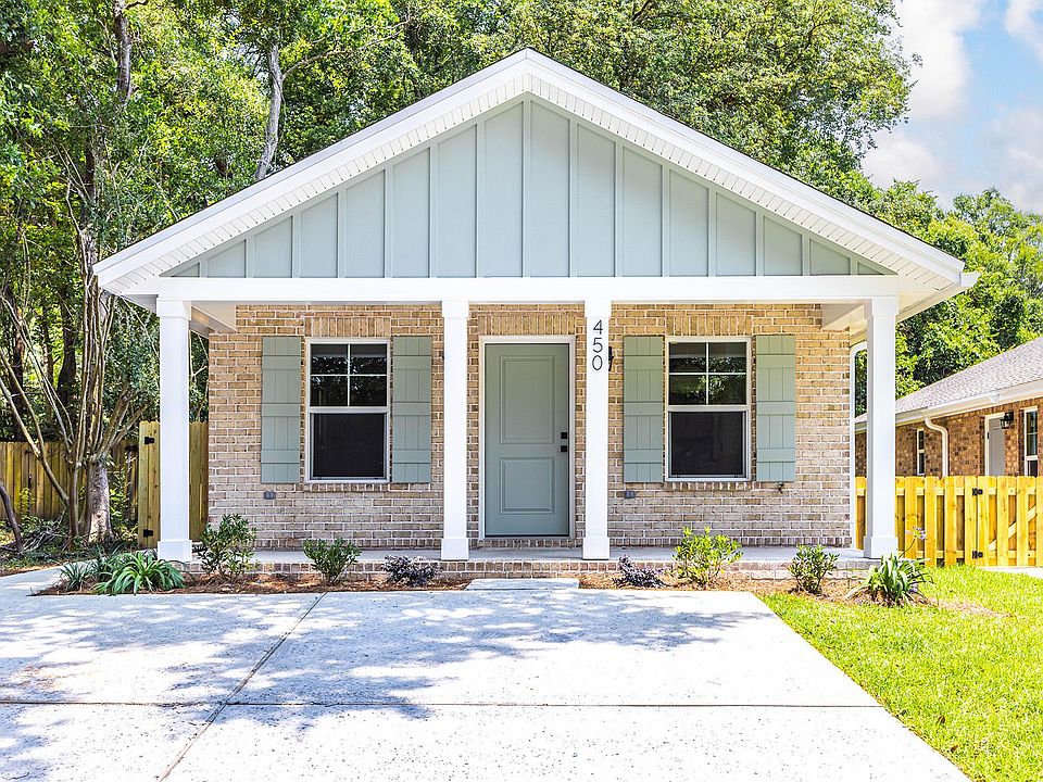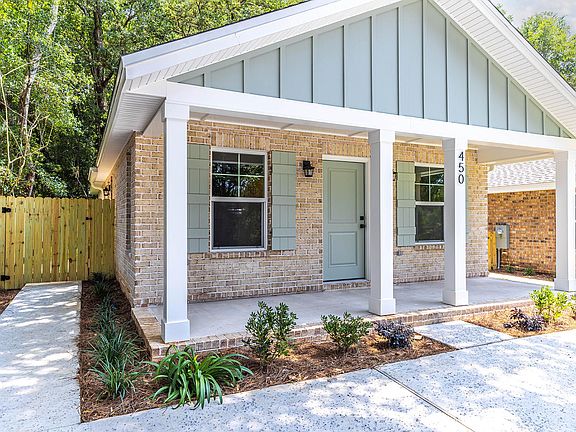 Located in Niceville conveniently close to multiple military installations, shopping, dining, minutes from the Emerald Coast's stunning white sand beaches, and walking distance to Plew Elementary. This 2 bedroom 2 bathroom home features beautiful wood-look vinyl flooring throughout and ample windows that fill the main living areas with natural light. The full kitchen has stainless appliances, custom all-wood cabinets, a pantry, and a breakfast bar that overlooks the living room. The kitchen and bathrooms all boast beautiful quartz countertops. The primary bedroom has an en-suite bathroom, recessed shower, and a large walk-in closet. The second bedroom has access to another full bathroom and walk-in closet. The laundry room includes a new stackable washer and dryer. Outside you will enjoy a fenced-in yard with a covered front porch perfect for relaxing. Lawn care is included. No smoking is permitted. Dogs considered upon Owner approval with a non-refundable pet fee.