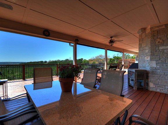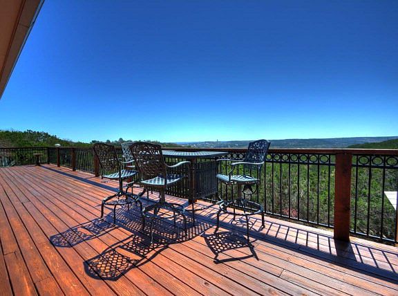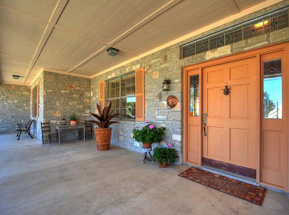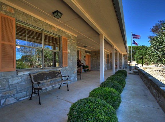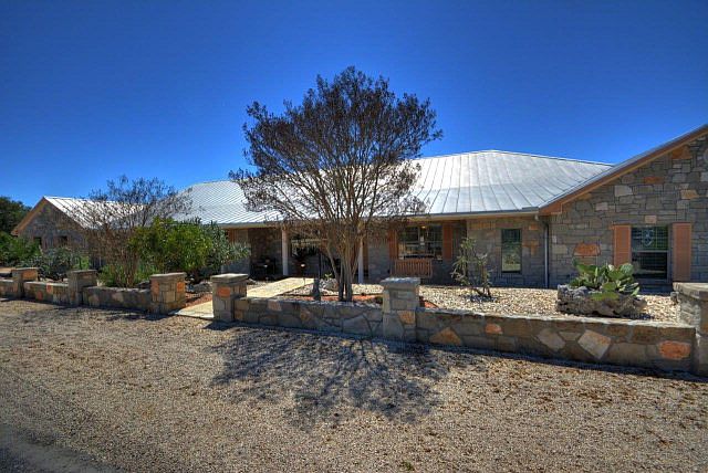 Impressive stone design w/standing seam metal roof w/complimenting front stone fencing & smart Xeiscape lawn/landscaping. Grand foyer w/stone archways lead to office/study complete w/built-in stained cabinetry. Living features built-in bookcase & wall of windows/doors leading to back deck w/wrought iron railing. Kitchen is well-appointed w/stainless appliances, island, pantry, breakfast area, &