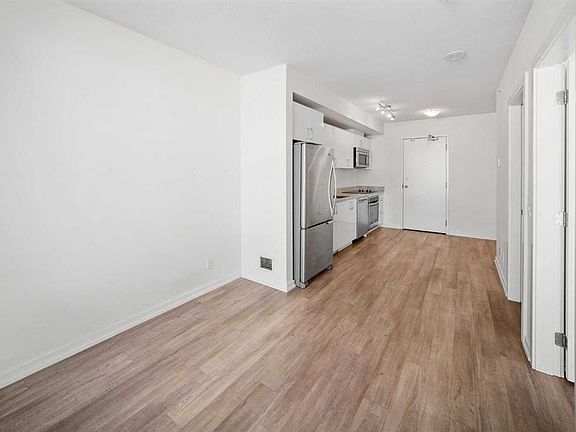 REDUCED!! SUN-FILLED SOUTH-FACING 1 BEDROOM + DEN WITH GREAT VIEWS! Located in the heart of East Village, this modern condo offers the ultimate downtown lifestyle. The functional layout includes a spacious bedroom plus a versatile den that can easily serve as a second bedroom or home office. The kitchen features sleek stone counters, ample cabinetry, and a premium stainless steel built-in appliance package, while the combined washer/dryer adds everyday convenience. Enjoy a bright, open living space with floor-to-ceiling windows that showcase daytime sunlight and stunning nighttime skyline views. Step out onto your private balcony to take in the sights of the Central Library. The building is packed with amenities: a rooftop patio with BBQs and 360° city views, a fully equipped gym on the 16th floor, lounge, bike storage, and personal storage lockers. Just steps from the LRT, Studio Bell, restaurants, shopping, and the Central Library, this condo combines style, convenience, and location