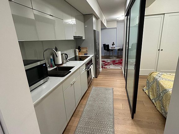 This 1-bedroom unit has floor to ceiling windows, A/C, Bloomberg appliances, and modern cabinets and countertops. full bathroom with LED back lit mirror and quartz tile.