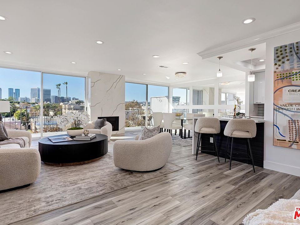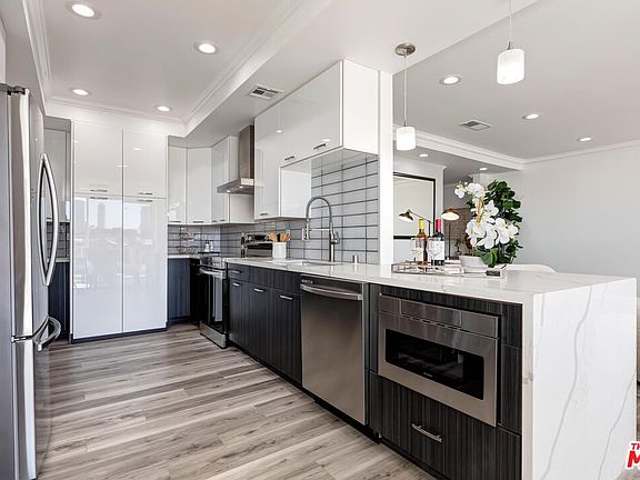 We are excited to present a newly renovated, spacious front-facing condo on the 4th floor in the highly sought-after location in Beverly Hills. This sunny and bright unit offers breathtaking city views of Century City and Downtown Los Angeles. Beautiful gourmet kitchen boasts exquisite details, including custom cabinetry and new appliances. Throughout the condo, you'll find beautiful wood flooring that adds a touch of elegance. Step out onto the generous balcony, accessible from the living room, and be captivated by the phenomenal views of Century City. The large primary bedroom suite features a walk-in closet and secondary closet space as well as double sinks, and a large and wonderful walk-in shower. Both bedrooms have a with wonderful eastern views of Downtown Los Angeles. There is an additional area that can be used as an open office or den area. Additional amenities include a pool, roof top deck with city views, two side-by-side parking spaces, an individual storage unit, and access to Beverly Hills Schools. Walk to restaurants and shops on South Beverly Drive or to Pico Blvd. Just move right into this beautiful unit today!!!