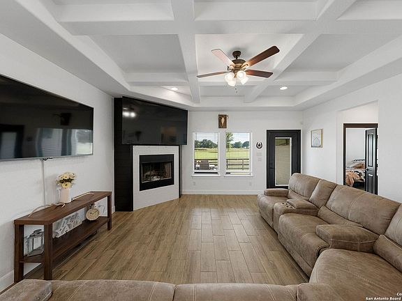 Welcome to your Hill Country retreat, where modern comfort meets resort-style living in the heart of Bandera, Texas, famously known as "The Cowboy Capital of the World." This stunning home sits on the Flying L Ranch Resort and Golf Course, offering not just a place to live but a lifestyle that blends the charm of Texas hospitality with the ease of everyday luxury. From the moment you arrive, the stone exterior sets the tone with timeless elegance. Step inside to find hardwood-look tile flooring that stretches throughout the home, bringing warmth and durability with none of the upkeep of carpet. The living room is anchored by a beautiful fireplace, the perfect spot to gather on cool evenings as flames flicker and laughter fills the air. The kitchen is a dream for both the seasoned cook and the takeout enthusiast. Crisp white cabinets, sleek quartz countertops, and a spacious layout invite everything from quiet morning coffee rituals to lively weekend brunches with friends. As the sunlight streams through the windows, you can already imagine the rhythm of daily life unfolding here. The spa-inspired primary suite feels like a personal retreat at the end of each day. Pamper yourself in the oversized shower or soak away stress in the deep garden tub. A huge walk-in closet ensures space for every season and occasion, making getting ready each morning a pleasure instead of a chore. Step outside to find your own private sanctuary. With no rear neighbor, you'll enjoy uninterrupted golf course views framed by majestic Texas hills. A covered patio opens to an extended deck and dedicated fireplace area, perfect for evening conversations under the stars or weekend barbecues while watching golfers in the distance. The expanded driveway offers space for RVs and boats, while the fenced backyard keeps pets and children safe as they explore. Life at Flying L Ranch is about more than the home. This is about the community and amenities that make every day feel like a vacation. Tee off on the golf course surrounded by breathtaking scenery, cool off at the resort-style pool that's open year-round, or enjoy an afternoon match of basketball, tennis, sand volleyball, or pickleball. Kids will love the playgrounds while adults can relax by the campfire. For quieter moments, head Creekside along the San Julian River for fishing and reflection, or gather friends for a round of western-themed miniature golf. This home is more than a property. It is a chance to live where neighbors become friends, where weekends are filled with recreation and relaxation, and where every sunset reminds you why you chose the Texas Hill Country.