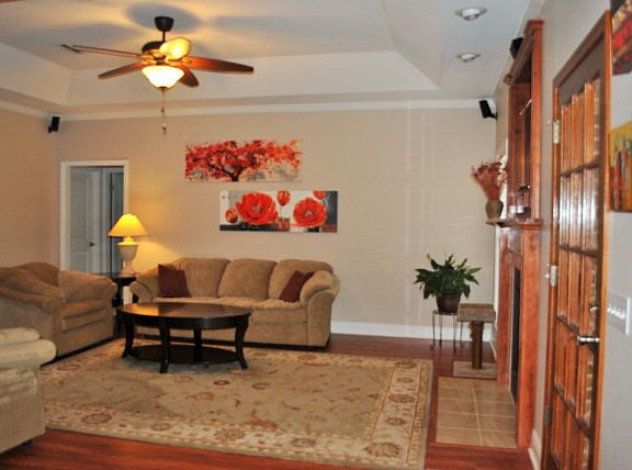 Beautiful 3 br 2 bath, brick home with attached 2 car garage & hardwood floors throughout. Come enjoy the pool while out on the wooden deck. Home includes a formal dining room off of the foyer. The kitchen includes wide, custom, stained cabinets, breakfast area, & stainless steel appliances. Master bedroom is downstairs with a newly stained door to the covered back deck. Master bathroom includes a Jacuzzi & separate shower. The back yard sits on an acre including a covered back deck & a pool.