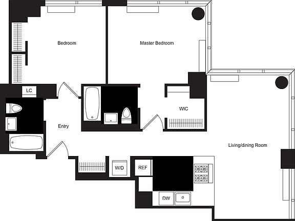 Beautiful Double Corner 2 Bedroom, 2 Bath with northern & eastern exposures, gourmet open kitchen, walk-in closet, and an in-home washer/dryer.