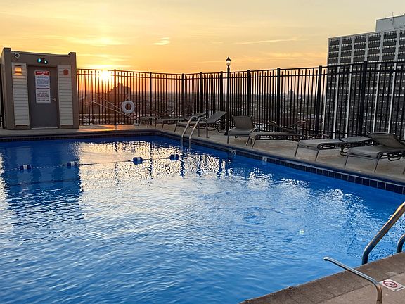 Enjoy sophisticated city living with this 1-bedroom junior condo, ideally located on a quiet, tree-lined street in East Lakeview. This newly painted, bright and airy home is filled with natural light thanks to floor-to-ceiling windows. A thoughtfully designed open layout features a separate sleeping area, generous closet space-including a and an updated bathroom. The modern kitchen is equipped with granite countertops, stainless steel appliances, and a contemporary breakfast bar, creating a seamless space for cooking and entertaining. The in-unit washer/dryer combo adds everyday convenience. Enjoy resort-style amenities in this pet-friendly, boutique building, including a rooftop pool and sundeck with panoramic skyline views, a top-floor fitness center, bike room, on-site laundry, additional storage unit, and a secure entry system with video intercom. Perfectly situated just a block from the lakefront trail, parks, beaches, grocery stores, restaurants, coffee shops, and nightlife. Commuting is effortless with the Belmont Red/Brown/Purple Line station nearby and multiple CTA express bus routes near your doorstep. This move-in ready home offers the best of urban living in one of Chicago's most sought-after neighborhoods.