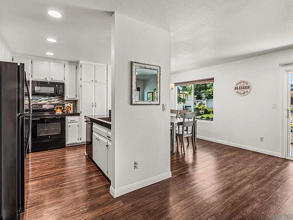 Spacious & upgraded upstairs end unit with lots of natural light. The interior features large dual pane windows with accordion blinds, updated flooring, fresh paint, & wood burning fireplace with marble surround. Bathrooms updated with marble vanity counters, a remodeled primary shower, & replaced toilets. Central heat and a/c, along with stylish ceiling fans in the bedrooms & living room. The primary bedroom offers double closets, and both bedrooms are generously sized. The kitchen is upgraded with recessed lighting, marble countertops, subway tile backsplash, built in microwave, & all appliances included. Smart features include thermostat & doorbell. The private patio features a large storage closet with full sized laundry. Parking is convenient with two spots located directly in front of the unit, one covered with a storage cabinet. The HOA covers water, hot water, and trash. Community amenities include a pool, hot tub, tennis/pickleball courts, basketball court & gated community. The HOA also recently replaced the roof. The complex offers a pedestrian gate with direct access to a shopping center. Trader Joe’s close by plus easy freeway access. Spacious & upgraded upstairs end unit with lots of natural light. The interior features large dual pane windows with accordion blinds, updated flooring, fresh paint, & wood burning fireplace with marble surround. Bathrooms updated with marble vanity counters, a remodeled primary shower, & replaced toilets. Central heat and a/c, along with stylish ceiling fans in the bedrooms & living room. The primary bedroom offers double closets, and both bedrooms are generously sized. The kitchen is upgraded with recessed lighting, marble countertops, subway tile backsplash, built in microwave, & all appliances included. Smart features include thermostat & doorbell. The private patio features a large storage closet with full sized laundry. Parking is convenient with two spots located directly in front of the unit, one covered with a storage cabinet. The HOA covers water, hot water, and trash. Community amenities include a pool, hot tub, tennis/pickleball courts, basketball court & gated community. The HOA also recently replaced the roof. The complex offers a pedestrian gate with direct access to a shopping center. Trader Joe’s close by plus easy freeway access.