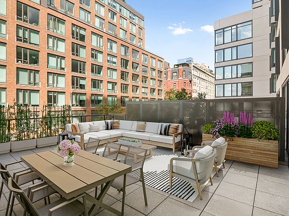 The terraceaccessible from both the living room and primary bedroomis a true extension of the home, large enough for outdoor dining, lounging, and lush container gardening. Whether entertaining or unwinding, this private oasis sets the residence apart.