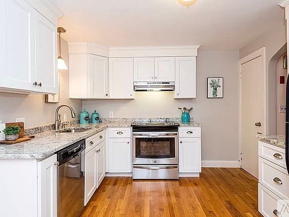 Beautifully updated townhouse style unit in desirable Stoneham. Updates include a renovated kitchen, 2 fully renovated bathrooms, refinished hardwood floors, a new enlarged master closet, large patio with built in fire-pit, fresh paint, and in-unit laundry. The yard is fully fenced and private which is perfect for pets (allowed here!) and there is a large driveway just for this unit equipped with an electric car charger. Location is super convenient to both highways as well as downtown Stoneham and shopping in Woburn. It is also right down the street from the bike path and next door to Unicorn Golf Course. So much to love and nothing to do but move in! Tenant pays heat, hot water, and electricity. Owner pays for water, sewer, and trash. No smoking of any kind. Rent must be paid within first 7 days of the month to avoid fees.