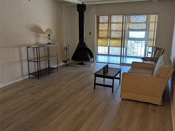 Discover Kings Mooring Condos in the desirable Skyway Marina District of St. Petersburg. This beautifully updated one-bedroom, one-bath unit on the third floor (Unit 305) features fresh paint, faux beams, and a cozy fireplace, all adding to its unique charm. The bathroom has been remodeled with a skylight and walk-in shower, and new flooring enhances the bedroom, hallway, and living room. The kitchen is ready for your personal touch and comes equipped with a new refrigerator, range, and microwave. Enjoy the spacious walk-in closet and an enclosed balcony. With the laundry room and elevator conveniently located right outside your door, daily living is a breeze. This unit includes an assigned covered parking spot (305). Take advantage of the sparkling pool or explore nearby beaches, shopping, and dining. With Interstate 275 just around the corner, your commute is hassle-free. Don’t miss out—this unit also boasts a new roof, pool, and termite treatment completed in 2023, promising a carefree lifestyle!