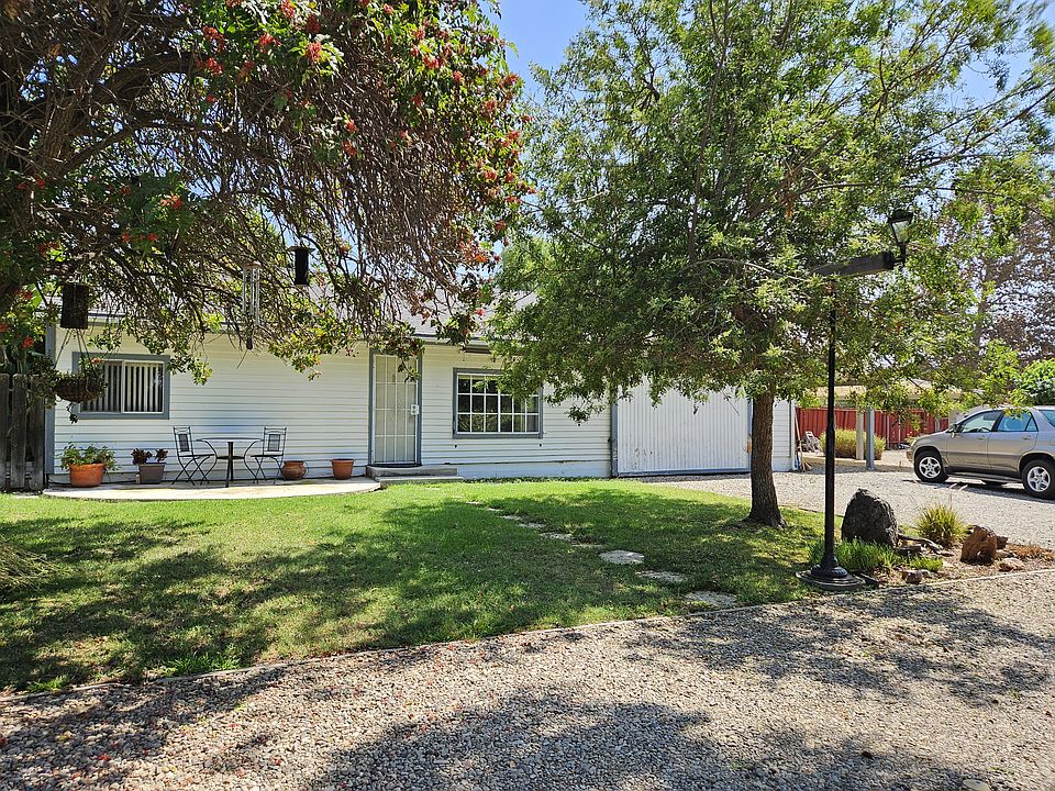 This is a cozy owner's quarter in the back of the main home. This owner's quarter is designed for the occupant to use the main home for cooking facilities. Owner's used and will provide a built in microwave, electric cook plate with 2 burners, and a refrigerator, and a large freezer and full size washer and dryer in an outdoor laundry/water heater storage room. There will be no stove or cooking oven in the guest quarter when you move in. Inside has fresh paint and is guaranteed to be housekeeper clean. The main room is cozy with a fireplace and wood flooring. There is a bedroom with mirrored closet doors and a built in dresser, a bathroom with a newer stand up large shower stall, and a small office/storage area. Property can easily accommodate your RV or boat , however we are on a gravel driveway. The owner added a covered carport for 2 car parking. There is a caged Dog Run in the back that can easily be freshened up by you and used. This is a rustic and private area. Month to month agreement. Small pets under 35 pounds only please. No smoking. Appliances provided as a courtesy. Owner not responsible for repair or replacement. Shared Utilities and gardener. Solar.